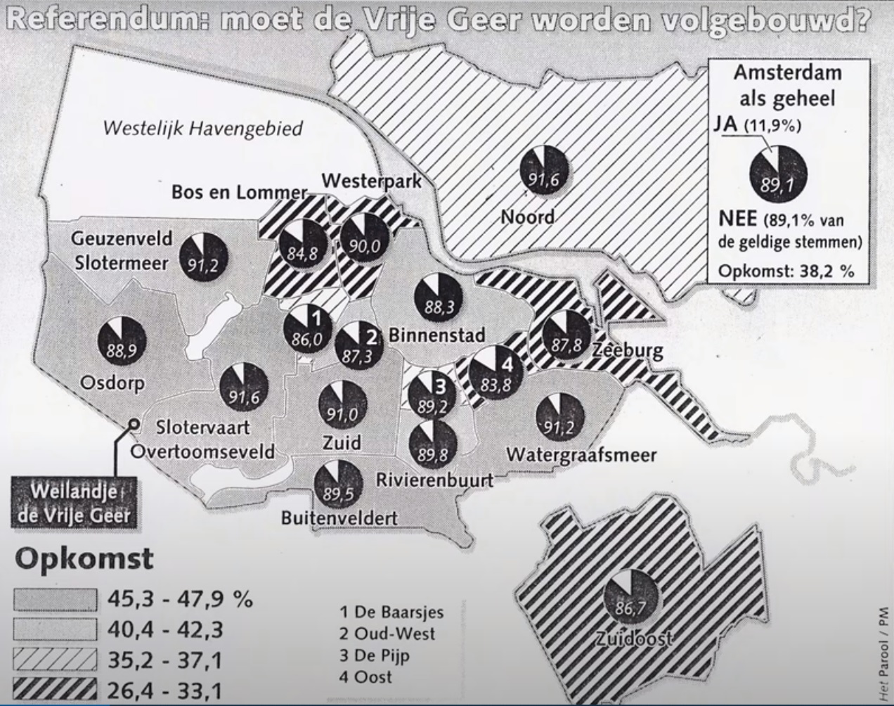 Als het dan lukt om het referendum te houden, hoe krijgt de actiegroep het dan voor elkaar om het ook te winnen? Hoe breng je voldoende mensen op de been. Want: als onvoldoende Amsterdammers meedoen (als de opkomstdrempel niet gehaald wordt), is de uitslag ongeldig en is alles voor niets geweest. Hoe pak je dit aan? Hoe zet je een campagne op? Welke rol spelen de media hierbij? Welke rol speelt de hoofdgroenstructuur De Groene AS? Hoe stemt Amsterdam?